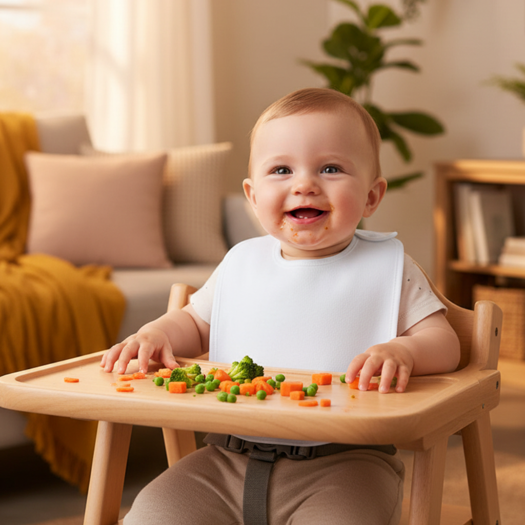 Um acessório indispensável para as refeições do bebé! Simples, prático e sempre à mão — o presente perfeito para completar o enxoval.